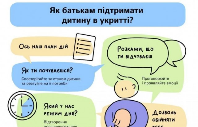 Є інструкція, що потрібно робити батькам в укритті для підтримки дітей.