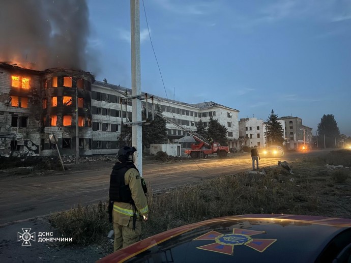 6 октября российские военные нанесли удар по 4-этажному административному зданию в городе Константиновка Краматорского района. В результате удара возник крупный пожар. На место происшествия оперативно прибыли спасатели 16-го государственного пожарно-спасательного отряда.