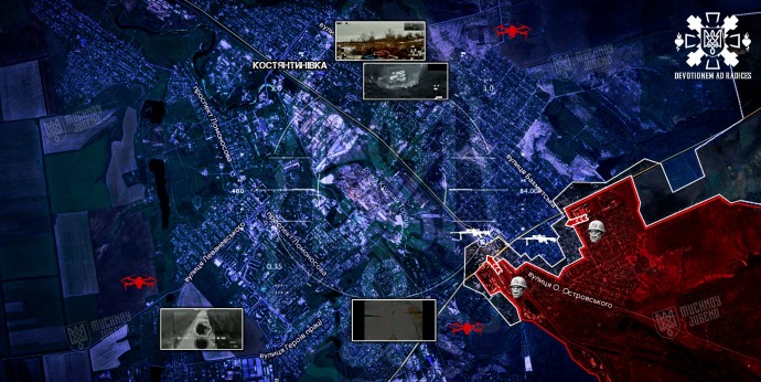 «Усі розмови про те, що противник зайшов у центр Костянтинівки або “відкусив половину міста”, — це балаканина. Ворога в центрі немає, і про його впевнене утримання міських кварталів мови не йде», — зазначає військовий.