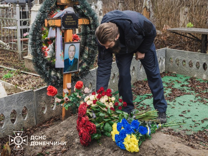 У річницю трагедії рятувальники Донеччини відвідали могили загиблих Героїв, поклали квіти, зустрілися з їхніми родинами та вшанували пам’ять хвилиною мовчання.