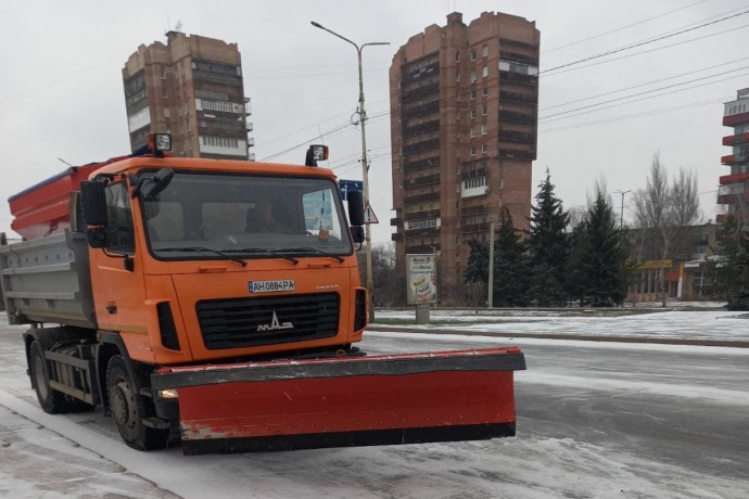 В связи с ухудшением погодных условий в Донецкой области на улицах Константиновской громады работает специальная дорожная техника.