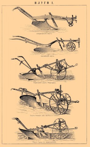 У виданнях початку 20-го століття було представлено безліч заводських плугів різних марок і виробників — вітчизняних та закордонних, які починають все більше впроваджуватись, і описувалося, як їх краще використовувати. Серед інших досить популярна фірма Еккерт. Так, зокрема, з двокорпусних «дуже придатним для підйому нови вважаються» плуги марок ZWNP4 і ZWEP, з гвинтовим відвалом і двоколісним передком. Ці ж марки хороші «для змету пари», а також для цієї мети з трьохкорпусних марка DRB. Для заорювання гною - дволемішні плуги, які можуть застосовуватися і для заорювання стерни.