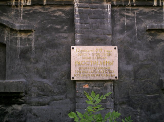 Пам'ятник 13-ти розстріляним робітникам відкрито 29 квітня 1967 року на площі біля заводу скловиробів (колишній пляшковий завод). Тут же на дореволюційній споруді цегляної стіни, біля якої 31 грудня 1918 року краснівці розстріляли робітників, встановлено меморіальну дошку. Ім'я 13 розстріляних робітників носить завод скловиробів.